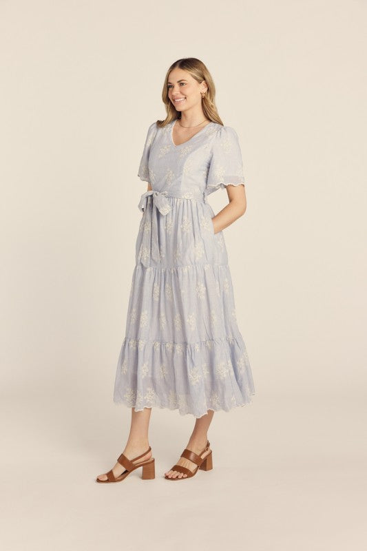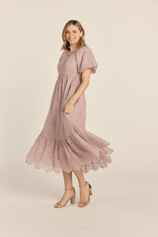 Embroidered details Midi Dress with puff elves