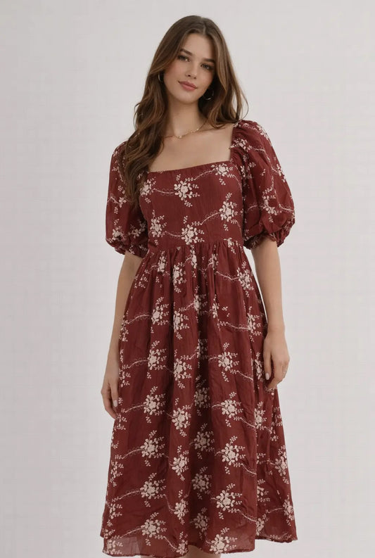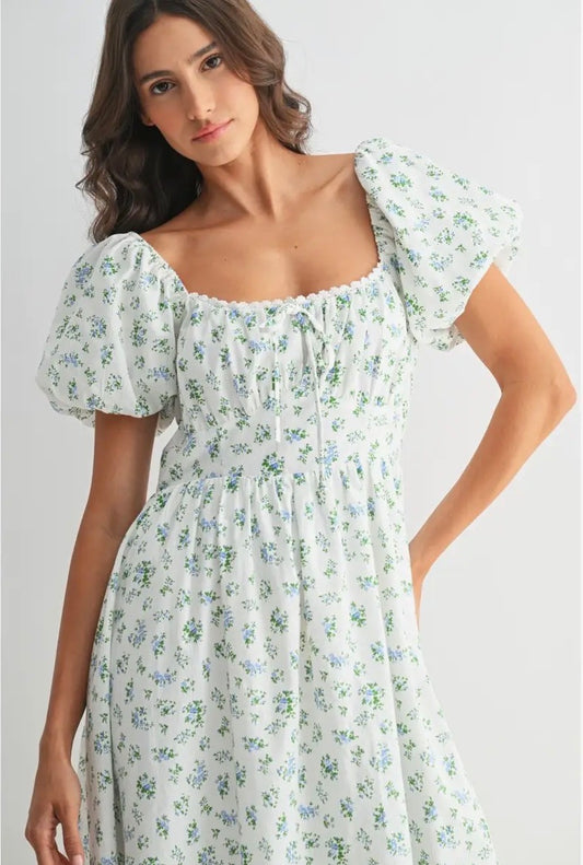 Spring floral puff sleeves Midi dress